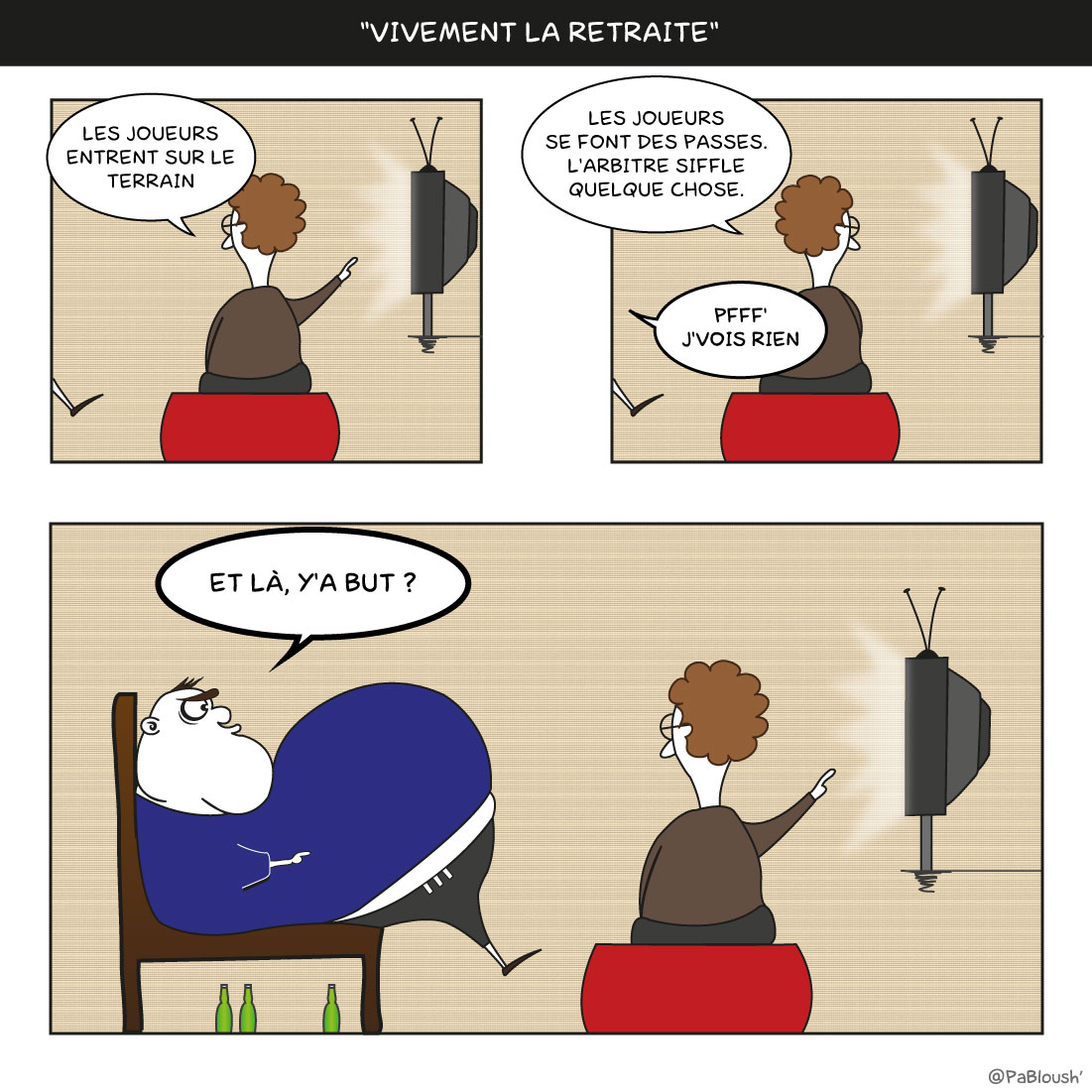 « Vivement la Retraite » qu’ils disent… 21 décembre 2014Monde ParallèleBande Dessinée, BD, Bières, ComicStrip, Couple, Dessin, Football, Humour, Illustration, Retraite, RetraitésPablo Buisson